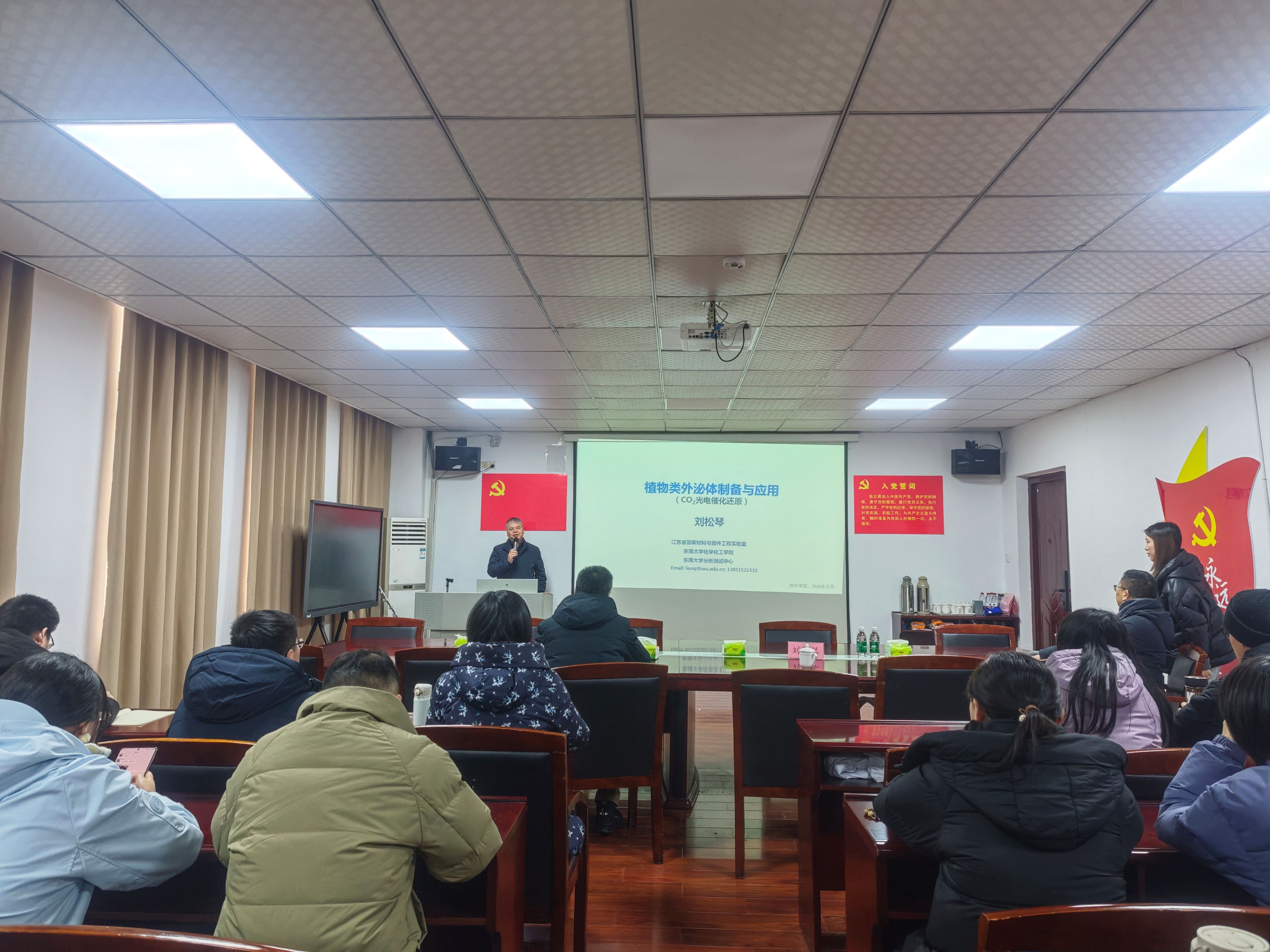 为贯彻落实学校科研强校战略,营造浓厚学术氛围,助推硕士学位授予单位建设,1月21日上午,东南大学刘松琴教授和江苏大学王坤教授受邀参加材料与环境工程学院第二届科研活动周系列学术讲座活动。讲座由学院副院长肖新乐主持,全体教职工参加。
