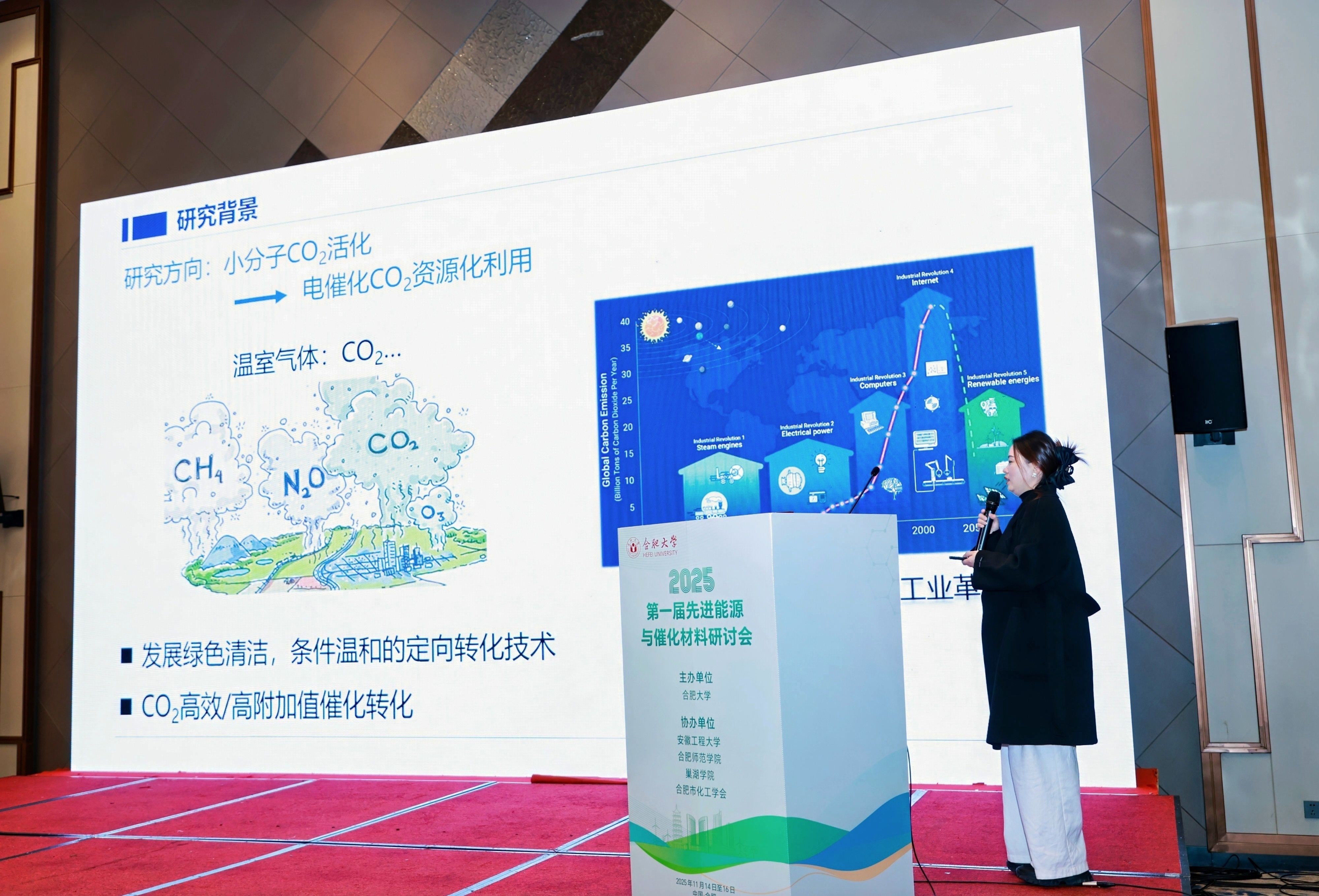 我校材料与环境工程学院王敏、王相宇教师在研讨会上分别作题为“银单原子合金上中间体内迁移增强CO2电还原为多碳产物”和“p区金属硒化物的构建及其CO2电还原性能研究”的口头报告,并与参会专家学者进行了深入学术交流和探讨。