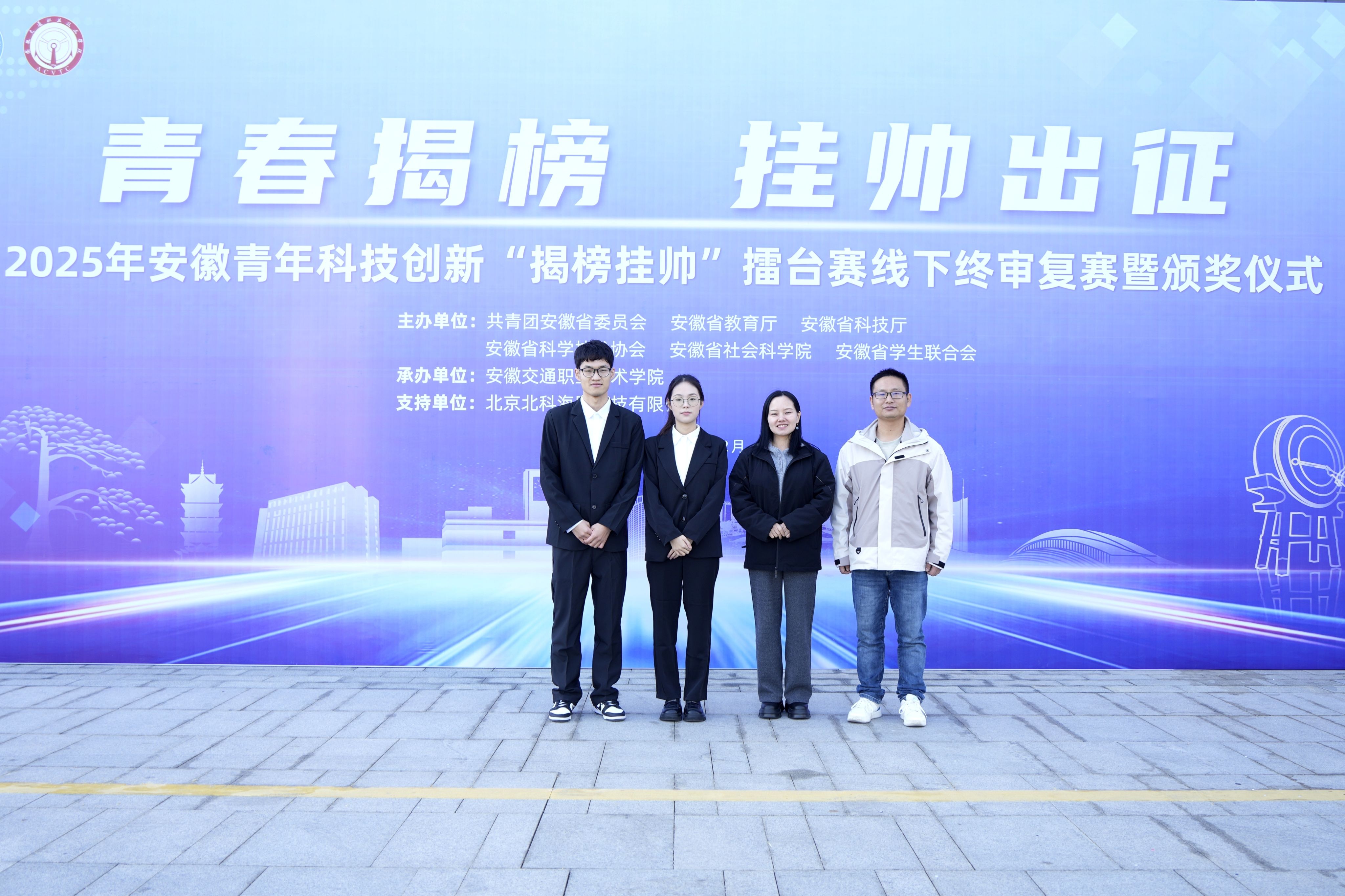 2025年12月7日至8日,由共青团安徽省委员会、安徽省教育厅、安徽省科学技术协会、安徽省社会科学院、安徽省学生联合会共同主办的2025年度安徽青年科技创新“揭榜挂帅”擂台赛线下终审决赛成功举办。我院选报作品荣获一等奖佳绩。