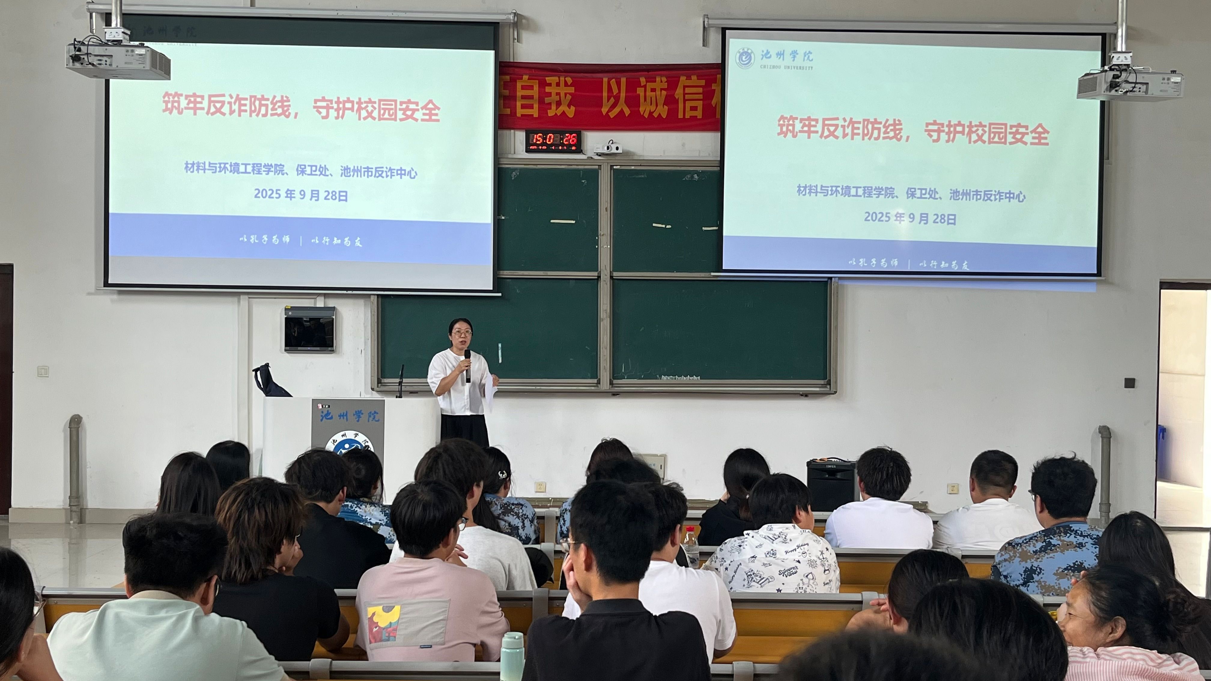 2025年9月28日下午,为深入贯彻落实国家关于打击治理电信网络诈骗犯罪工作的决策部署,切实提升学院师生防范电信网络诈骗的意识和能力,保障师生财产安全与校园和谐稳定,学院联合池州市反诈中心和保卫处联合开展“筑牢反诈防线,守护校园安全”主题宣传教育活动,学院全体教职工和各班学生安全员代表参加,活动由党委书记程海峰主持。
