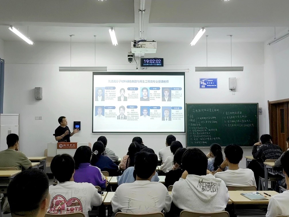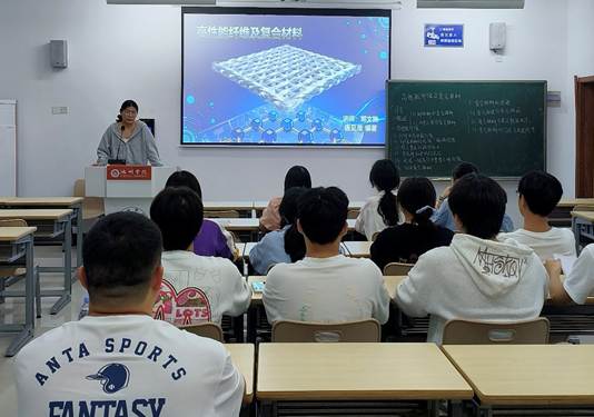 开班仪式结束后,微专业首堂课程《高性能纤维及复合材料》随即开课,由池州学院材料与环境工程学院郭文艳博士主讲。课堂上,郭文艳博士以“碳纤维在大飞机轻量化中的应用”为切入点,结合图文案例细致拆解高性能纤维的绿色制备工艺,生动呈现专业核心知识。